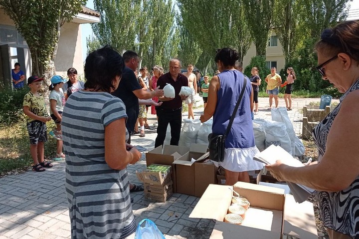 В подшефном Адыгее Геническом районе раздают гуманитарную помощь
