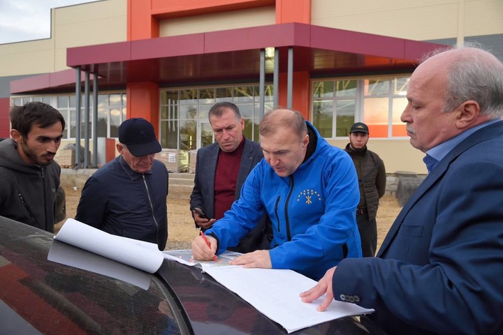 Глава Адыгеи Мурат Кумпилов проверил ход строительства физкультурно-спортивного комплекса в селе Красногвардейское. Он возводится в рамках нацпроекта «Демография».