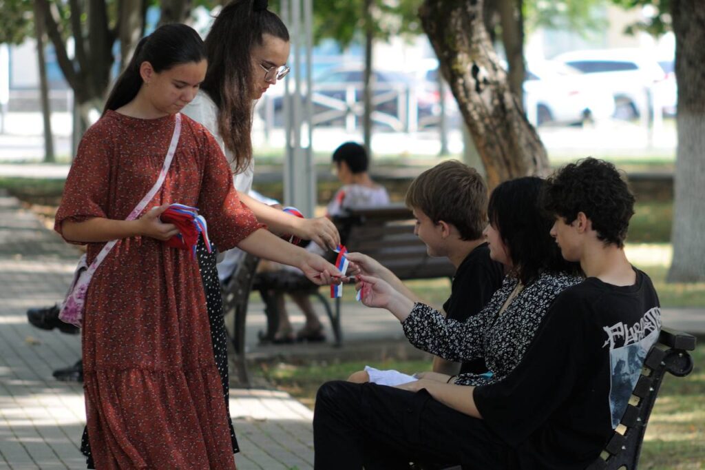 В столице Адыгеи волонтеры раздали более 500 ленточек с российским триколором