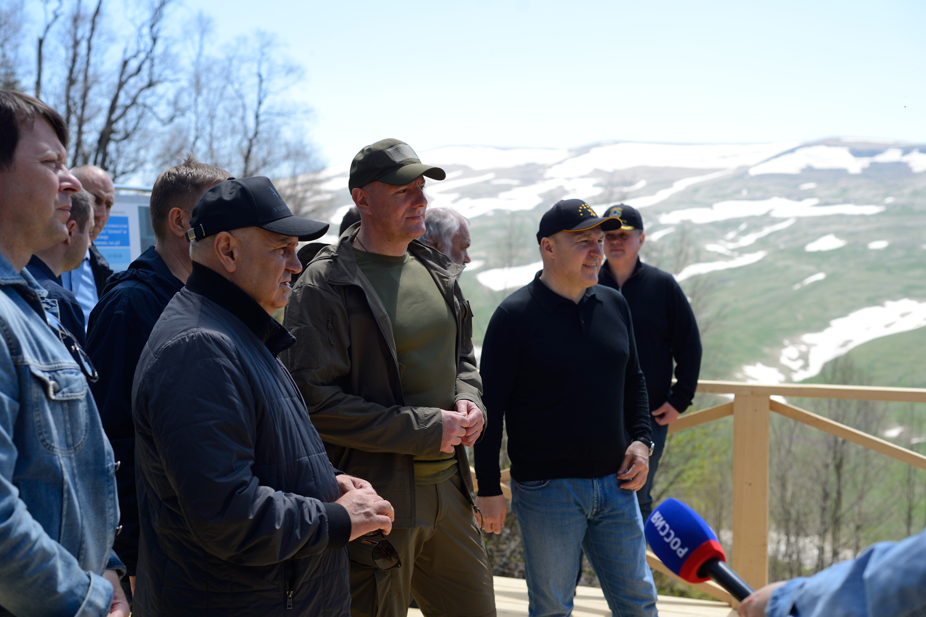 С участием Заместителя Председателя Правительства РФ Дмитрия Чернышенко, Главы РА Мурата Кумпилова, гендиректора корпорации «Туризм. РФ» Сергея Суханова состоялось выездное совещание по вопросам создания горнолыжного экокурорта «Лагонаки», которое прошло на территории плато Лагонаки, где планируется реализовать масштабный проект.