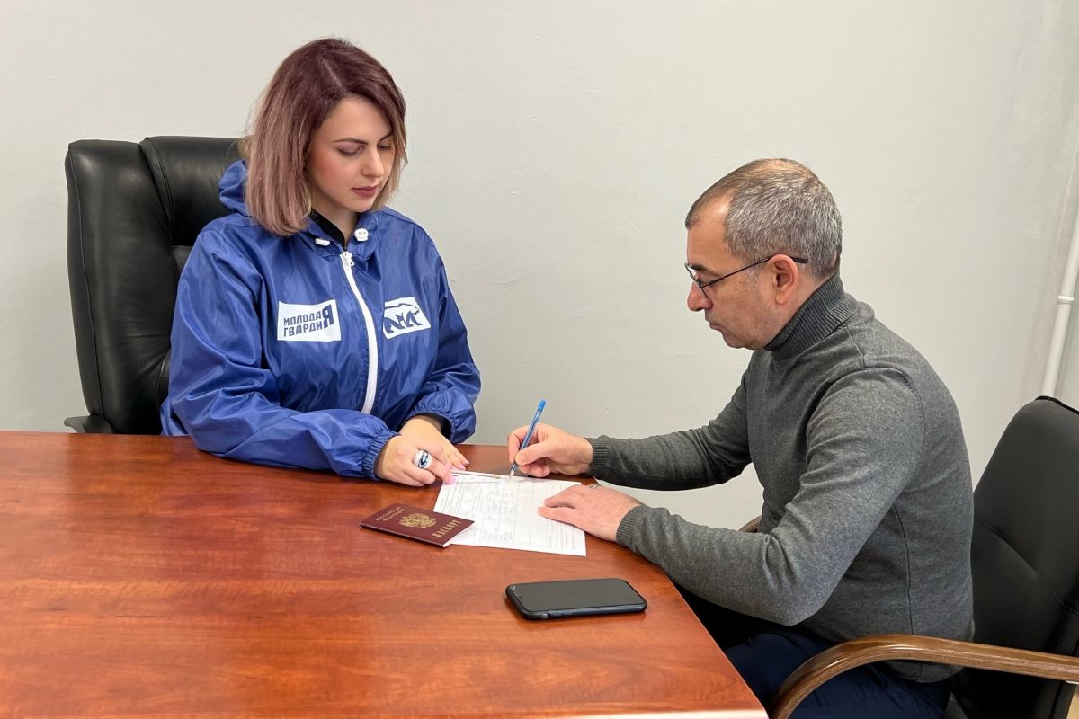 Молодогвардейцы Адыгеи принимают участие в едином дне сбора подписей в поддержку выдвижения Президента