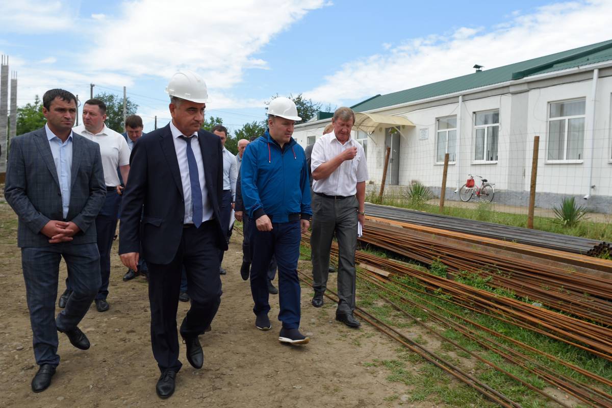 Глава Адыгеи также проинспектировал ход строительства спорткомплекса в хуторе Казенно-Кужорский. По проекту в здании будет размещен универсальный спортивный зал площадью 432,4 кв. м, а также вспомогательные помещения: раздевалки, тренерские, инвентарные, душевые и санузлы. Для обеспечения доступности спортивного комплекса маломобильным группам населения в нем предусмотрена установка необходимого оборудования. Сейчас техническая готовность объекта составляет 20%. Выполнены работы по устройству фундамента. Установлены опоры каркаса, проложены трубы водоснабжения от скважины к зданию. Также приобретено оборудование на сумму 0,5 млн. рублей. Завершить проект стоимостью более 22 млн. рублей планируется к концу текущего года.
