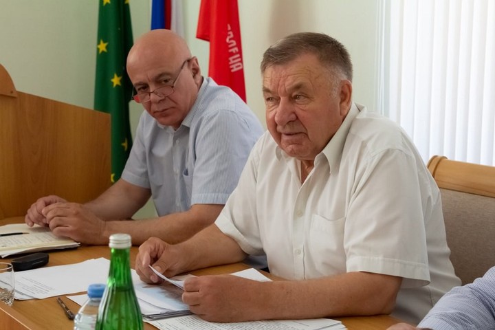 В администрации Тахтамукайского района спикер Госсовета=Хасэ Владимир Нарожный вместе с Эдуардом Цеевым провел рабочую встречу с главой Аскером Саввом,