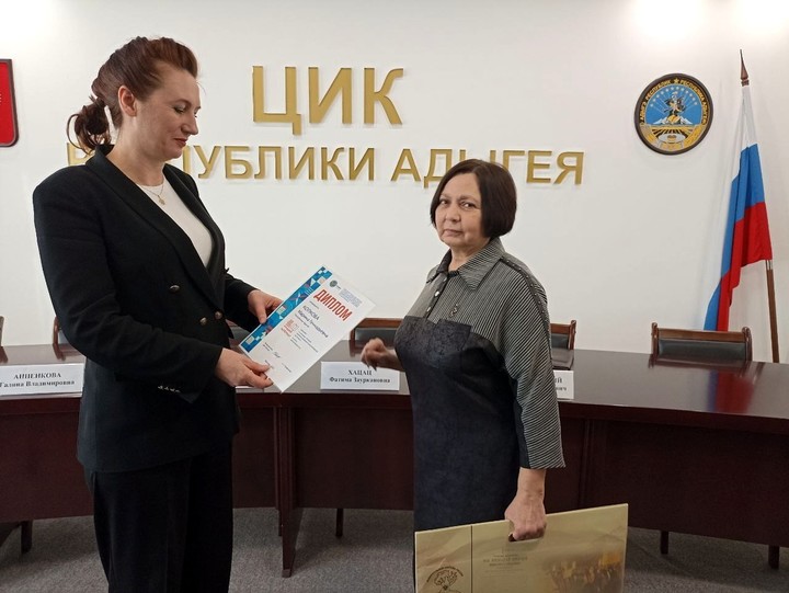 Награду победитею вручила заместитель председателя ЦИК Республики Адыгея Елена Майор.