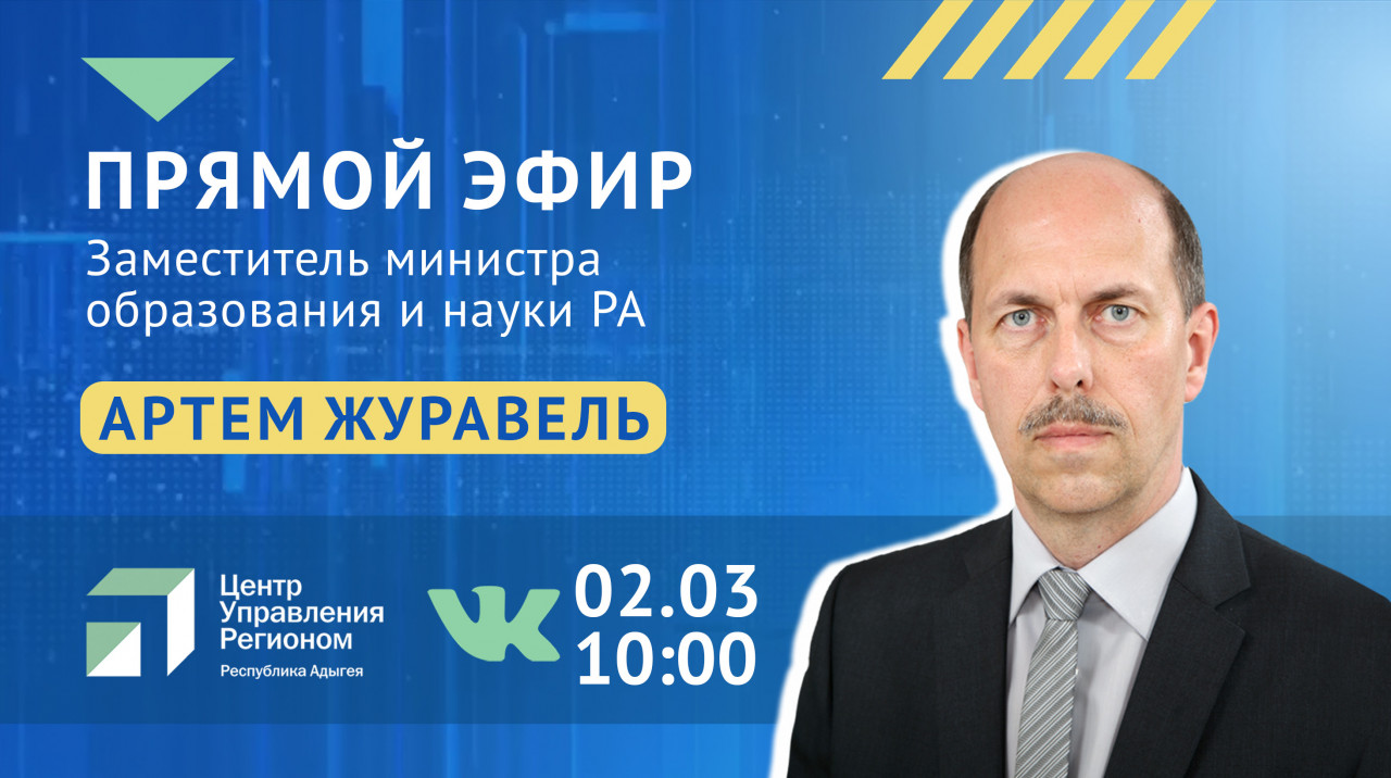2 марта в 10:00 заместитель министра образования и науки Адыгеи Артем Журавель ответит на ваши вопросы.