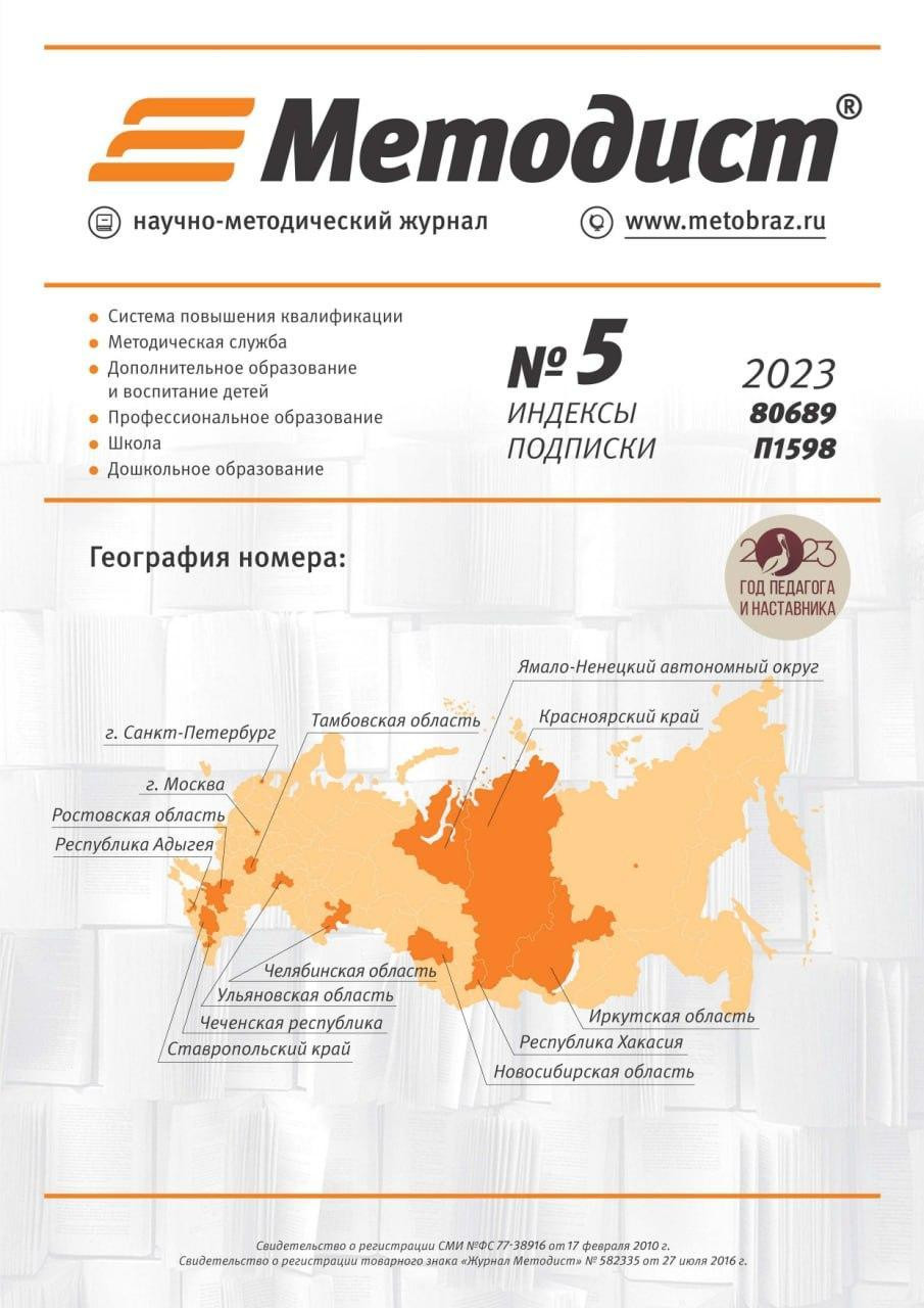 Федеральный научно-методический журнал «Методист» посвящен вопросам повышения профессионального мастерства педагогических работников. В нем публикуются материалы для учителей, воспитателей, преподавателей колледжей, техникумов и вузов, психологов, методистов, заместителей руководителей и руководителей образовательных организаций всех типов.