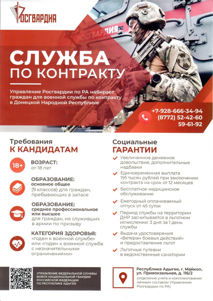 Управление Росгвардии по Республике Адыгея набирает граждан для военной службы по контракту в Донецкой Народной Республике