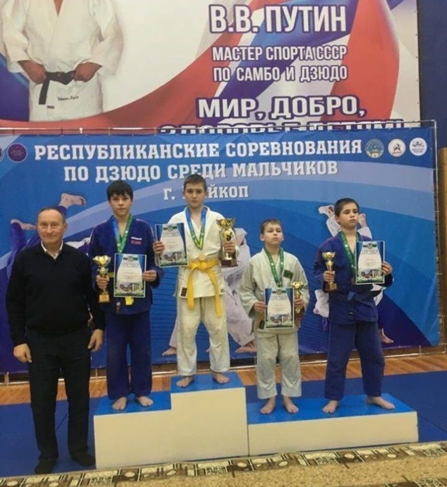 (заслуженный тренер РА М. Шнахов, тренер Т. Коблев).