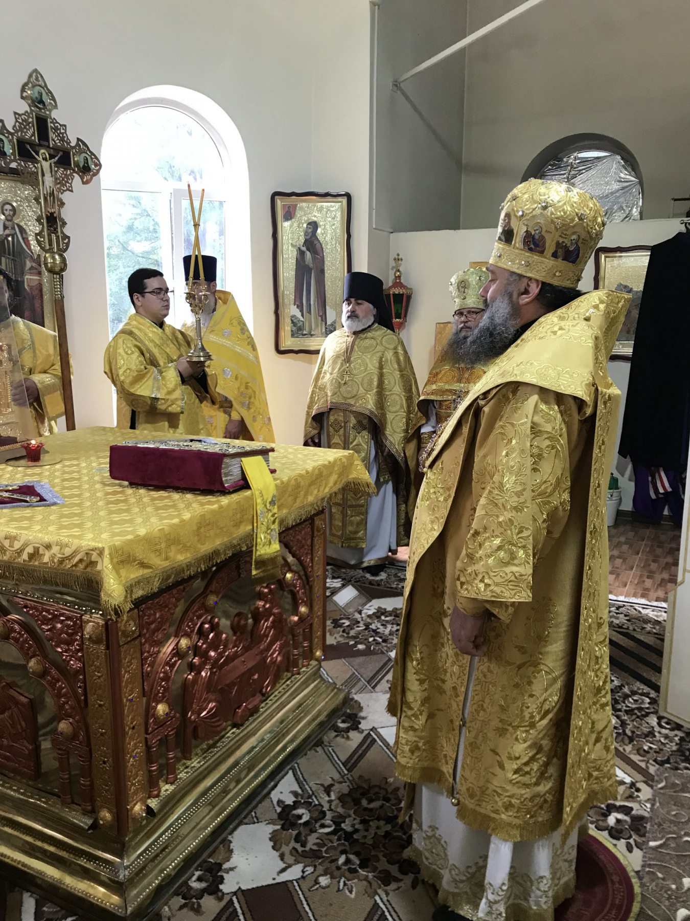 12 сентября, в понедельник седмицы 14-ой по Пятидесятнице, Высокопреосвященнейший Тихон, архиепископ Майкопский и Адыгейский совершил Божественную литургию в Александро-Невском храме поселка Краснооктябрьский.