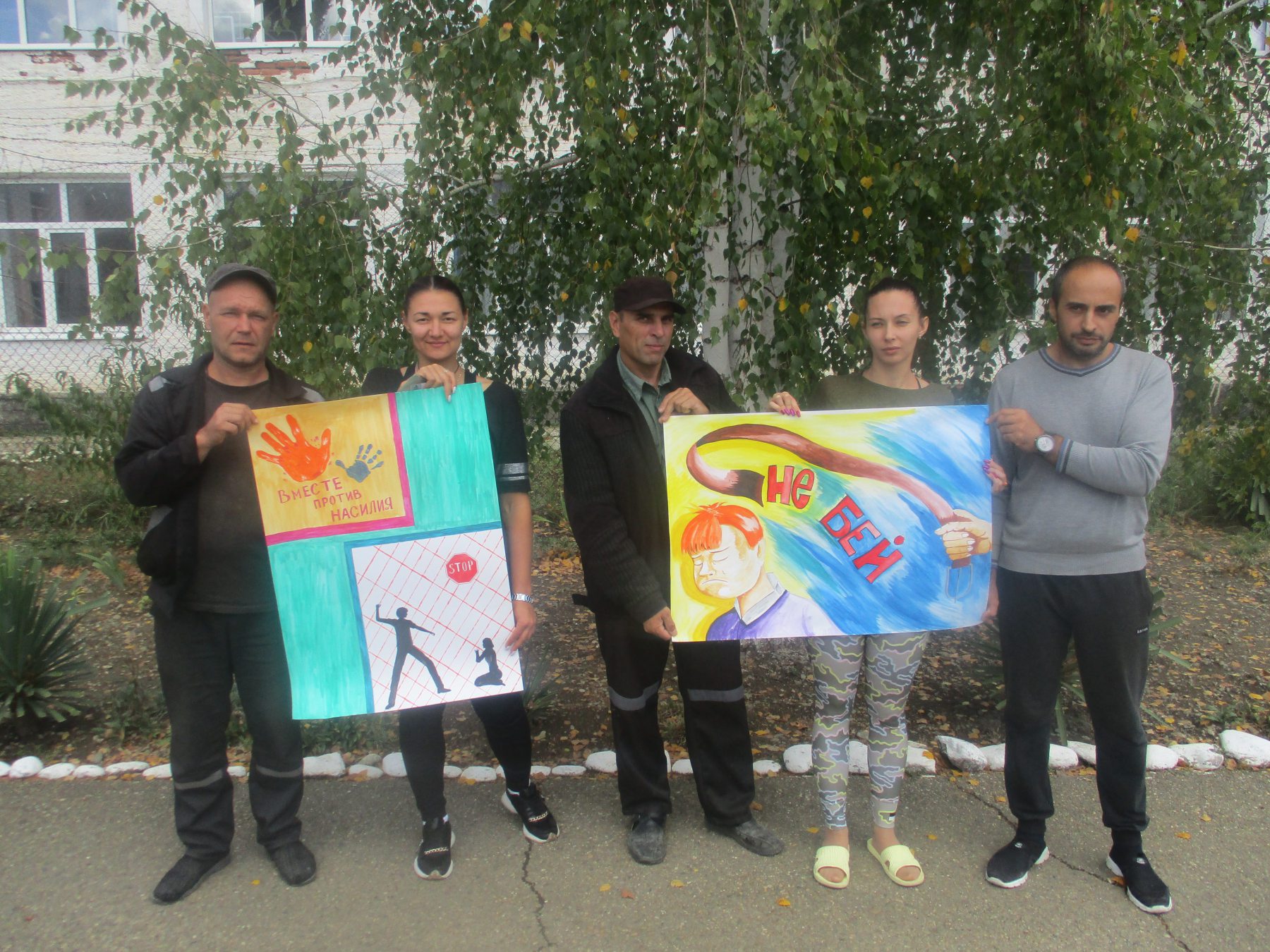 Осужденные в свою очередь подготовили плакаты символизирующие их протест против насилия и суицида.