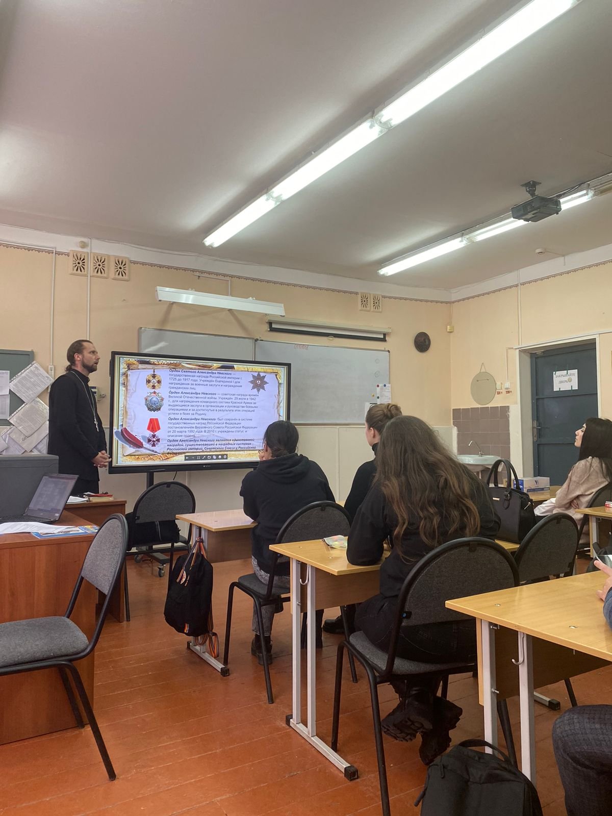 Присутствовали преподаватели и учащиеся 11 класса, а также желающие. Сотрудник отдела иерей Димитрий Шамин рассказал присутствующим о подвигах благоверного князя, а также о глубоком значении личности святого в деле укрепления нашего государства и сохранении духовной свободы русского народа.