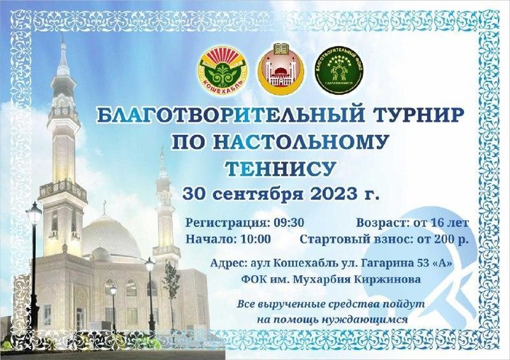 30 сентября в ауле Кошехабль пройдет благотворительный турнир по настольному теннису.